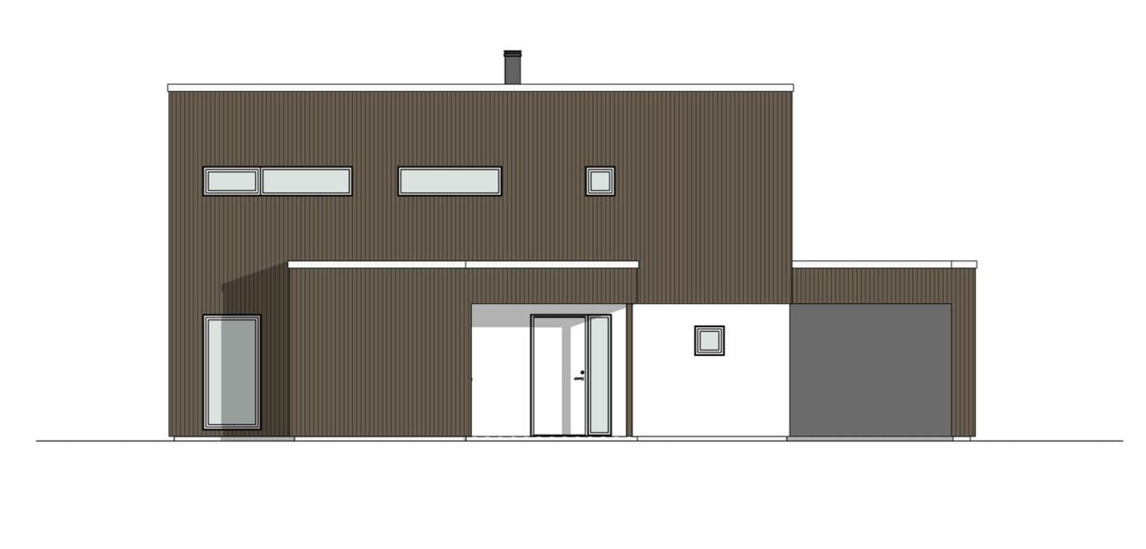 Drøbak er et moderne hus med en særegen fasade. De smale, stående trepanelene, glassrekkverk på balkonen og store vindusflater er med på å gi fasaden et uttrykk med særpreg. En blanding av vertikale og horisontale vinduer gir fine detaljer.