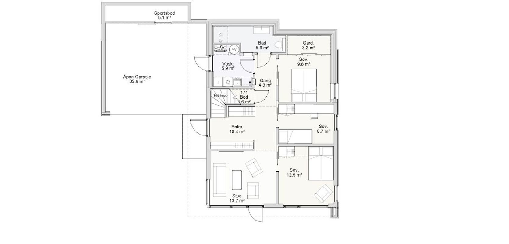 Harmoni er en moderne bolig som enkelt tilpasses dine behov. Enten du har flat eller skrå tomt, ønsker stue/kjøkken i første eller andre etasje, så vil Harmoni tilby en god løsning for deg. Og den har fokus på miljø og bærekraft gjennom tilrettelegging for solceller integrert i tak.