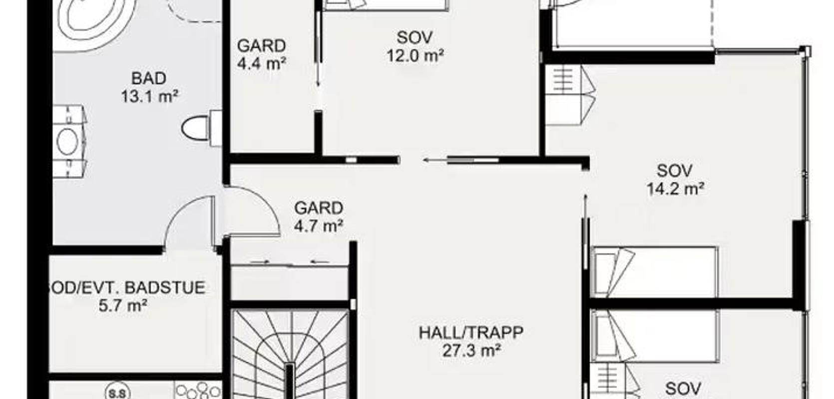 Du vil finne alt du trenger, inkludert en integrert garasje med egen takterrasse, to balkonger, fire luksuriøse soverom og en åpen og innbydende stue- og kjøkkenløsning. Dette er et hus som inviterer til mange hyggelige opplevelser, både inne og ute.